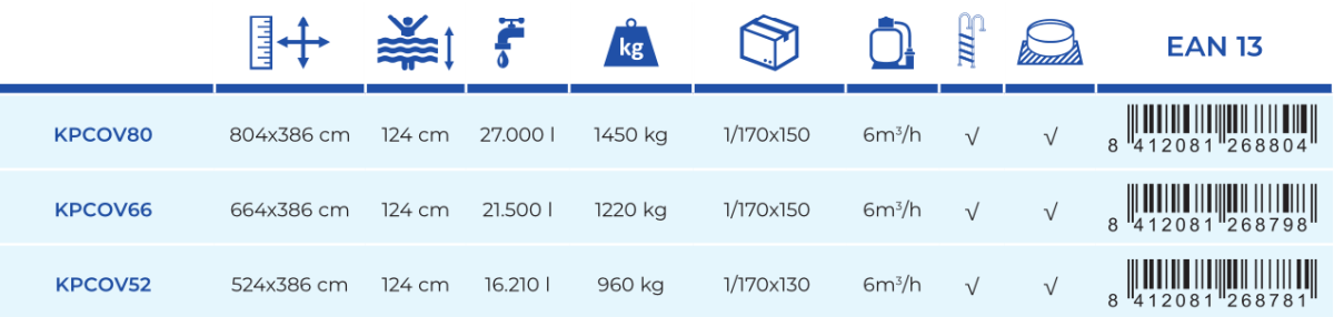 – Liner azul: 60/100. El liner tiene un tratamiento anti-ultravioleta que retrasa el envejecimiento del P.V.C.