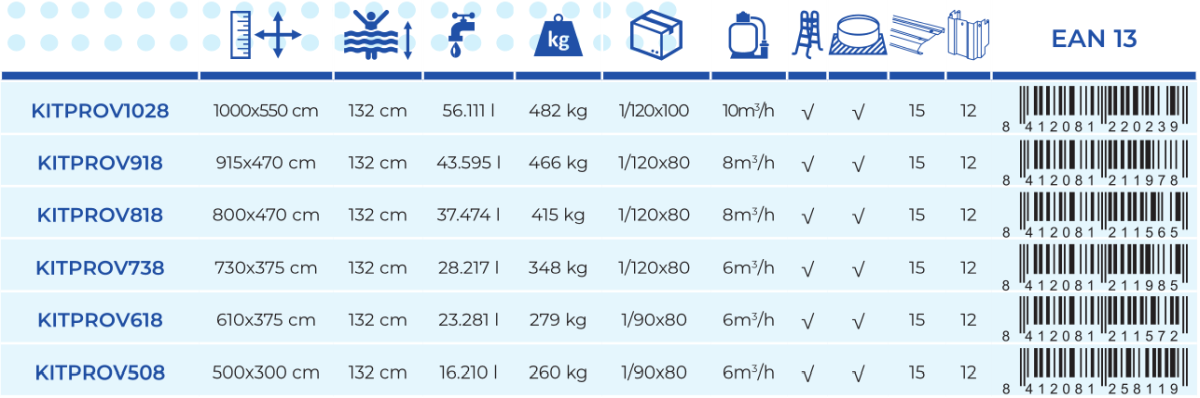 - Disponible en 6 medidas: 500×300 (KITPROV508), 610×375 (KITPROV618), 730×375 (KITPROV738), 800×470 (KITPROV818), 915×470 (KITPROV918) y 1000×550 (KITPROV1028).